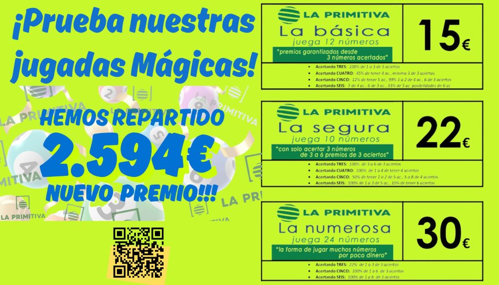 En Lotería El Toro seguimos comprobando que la magia existe… al menos cuando hablamos de nuestras Jugadas Mágicas. En el último sorteo de La Primitiva hemos repartido un premio de 2.569 €, que ha ido directo al bolsillo de uno de nuestros clientes.